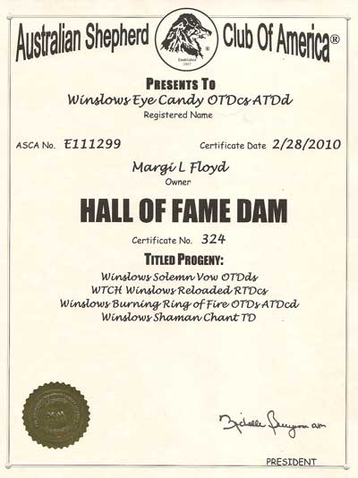 HOF DAM#324 WTCH Winslows Eye Candy (B/O/H) ASCA Ptd