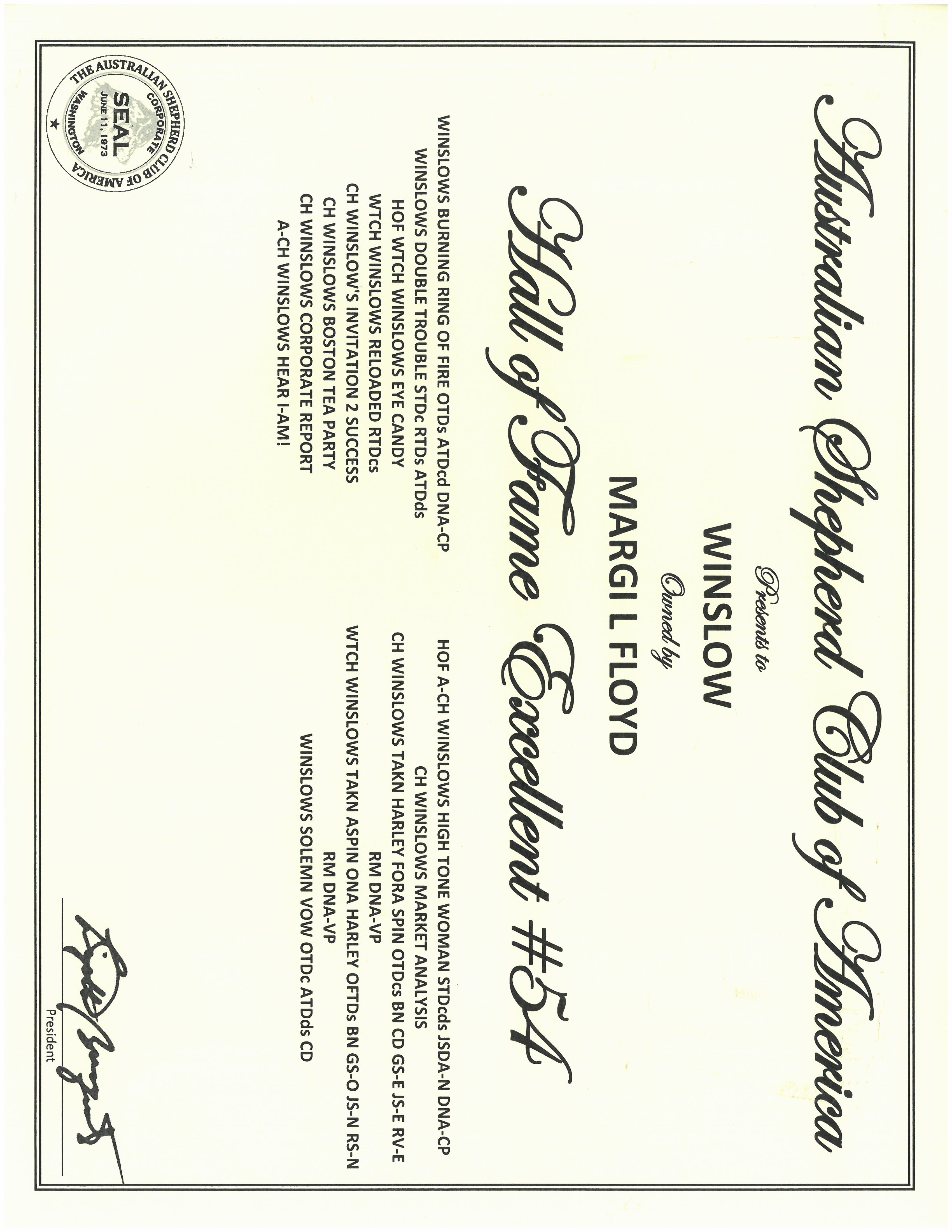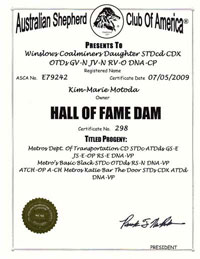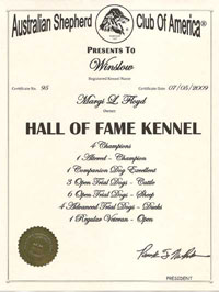 ASCA Hall Of Fame Kennel recognition...