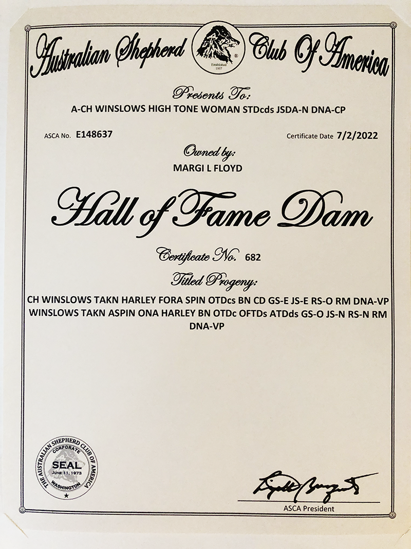 ASCA recognizes the kennels/breeders who have produced titled Australian Shepherds that have met the HOF requirements as set forth below.