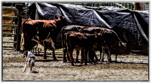 I've finally been able to purchase some calves to grow and work the dogs on. These past few months as they grow, Courtney and Trouble have become a great team in working them. Courtney has enjoyed working them and seems to prefer them over the sheep!