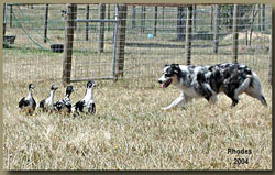 2001 - Courtney went to her first ASCA Trial on October 13/14th, 2001. At 17 mos. she got her Started Trial Dog Sheep title! We were VERY, VERY Proud of her! She took control of her sheep and kept them together.
