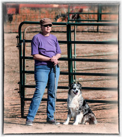 One thing I will say about this girl is she is a workaholic. When I think it's time to go into the house, Courtney will usually lay down in front of the pen waiting to go back to work. Courtney also is great in going out and putting the stock back in the pens, then she will lay either inside the pen with the sheep, quietly dozing off or outside the pen. The sheep are quite content and at ease. Courtney is a very quiet worker, hasn't started heeling but does head. She will also go under the sheep in the take pen/chute and goose them to get them moving.
