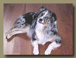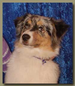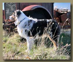 Blue Merle c/w Male 05/29/97 - 05/08/12 20" 45# Bite: Full/Scissors Eyes: Blue w/brown / cleared 5/07 (10 yrs of age) OFA: Good sire: Ch. Silverwoods London Pride CD sire of HOF DAM Winslows Eye Candy, ATDsd OTDc (8 asca pts/1 leg ATDc) Winslows Sign on the Dotted Line (10 asca pts) A-CH Tri-Smith's Liberty Belle CD RN |