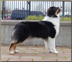 With very limited showing (actually his 4th show) Mikey made us very proud by coming home with his first points - and in a BIG way! Mikey took Winners, Best of Winners and Best Opposite from the 6-9 Class for his first FIVE pts! (ASCA) under Judge Gary Dunlop. He followed this with a Major Reserve the next weekend (AKC). Mikey was off the rest of the year due to an injury to his foot. |