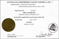 Sire: WTCh Sweetgrass Flying 'A' Blackjack