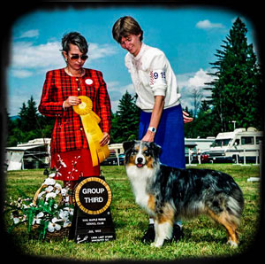 The Summer of 1993 was one of our happier times as well as sad times. In June of 93, Tarey was handled to her first Breed wins for another 4 point major. Unfortunately, it wasn't but a few days later that we learned Chase, her buddy from the time their were pups, had to be put to sleep due to internal bleeding and other complications. In his memory we devoted finishing Tarey's Championship to him. Tarey later went on to gain another major reserve that month and finally, in July on her daughter Juli's 4th birthday, she went Best of Breed again to finish her ASCA Championship AND her ASCA CDX followed by her first leg on Started Sheep!