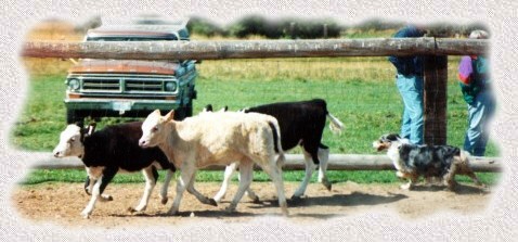 Tarey enjoyed the life of leisure, periodically moving the chickens and other livestock around when she felt like it. She loved to sit in the holding pens when the lambs, kids and chickens are in feeding. This helps to get the livestock use to dogs in a non-threatening way and let her enjoy what see was able to do in her younger years! Her great granddaughter, Trouble, keeps up this tradition. Just shortly after I lost her daughter, Juli, to cancer in 2001, at 14 1/2 years of age Tarey left us. She had a long eventful life, but at the end I knew when it was time. I'm sure that she is harassing her daughter, Juli, right now on who's going to sleep where! Sleep well sweetie! |