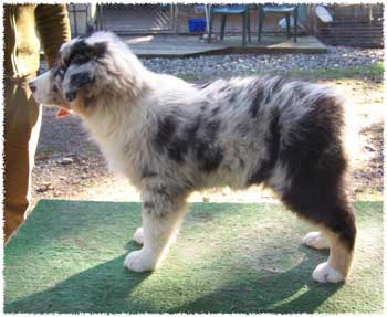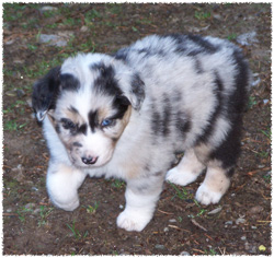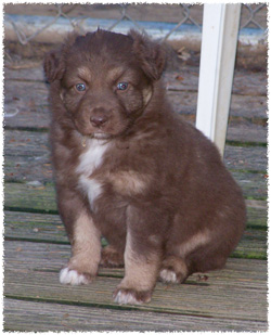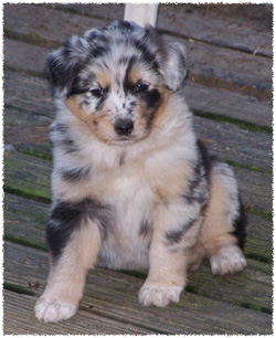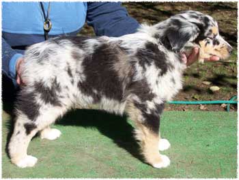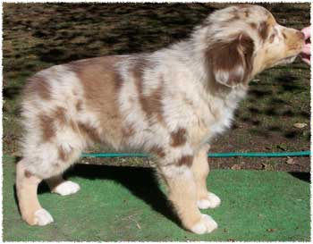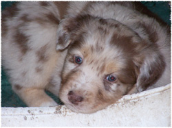 Winslows Fire Flies"Daisy"owned by Laura Baker and Family red merle white & copper amber eyes with a hint of blue |