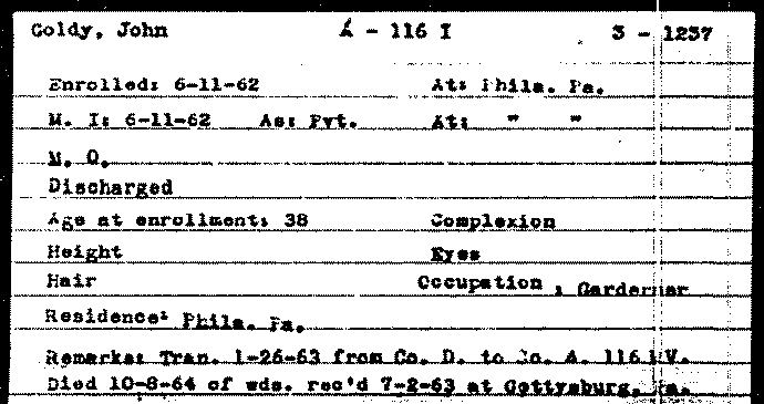 wounded at Gettysburg, VA on 07.02.1863 and died on 11.02.1864.