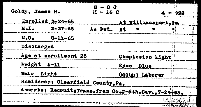 transferred 07.24.1865 to 161st Regiment 8th Cavalry Co. G