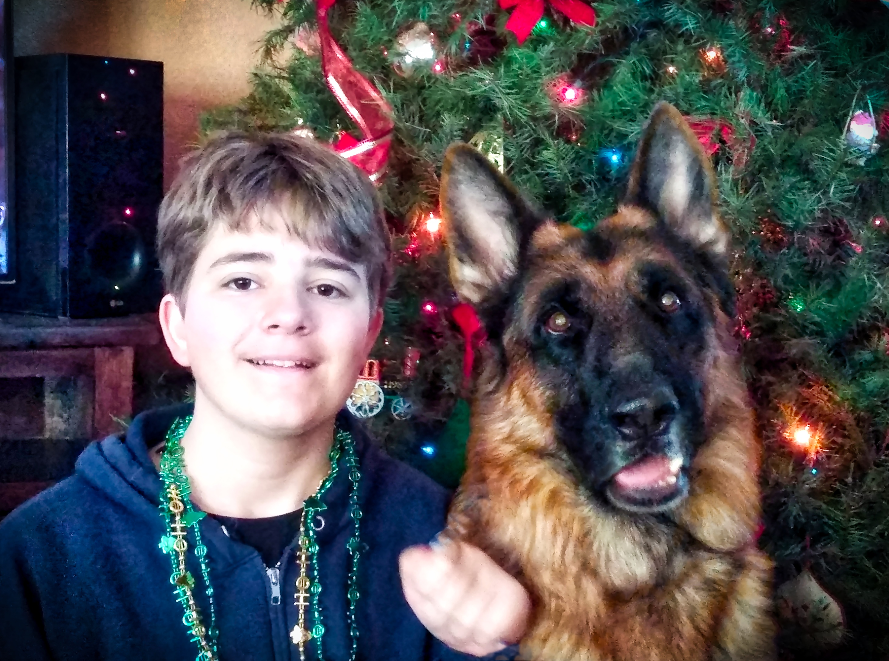 Kappo and Hunter Christmas 1 year apart...what a difference.