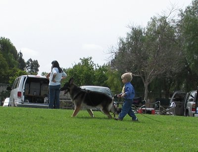 Little Boy, BIG dog during stacking