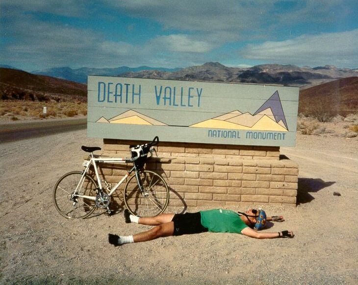 I crossed Death Valley at night and came out at the south end in the morning. It seemed like a good time to pose for a picture. (click on picture for larger image)