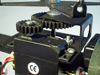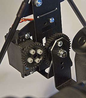 DELUXE REDUCTION GEAR PACKAGE U$35.00 [bottom left] including Gear Guide, machined RobotZone gears to provide a 1:4 reduction, axle, and all necessary hardware. Servo not included. Zero reduction (1:1) is available on request. |