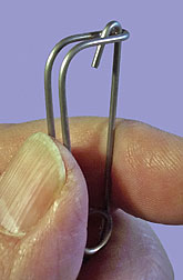 KAP-Klips™ Adapted from commercial fishing, these stainless steel fasteners for hanging the Picavet are strong, simple, and as easy to use as a safety pin. They're not quite as slip-resistant as our Hangups™, but plenty safe and secure. A pair of KAP-Klips is included with each kit except the Deluxe. KAP-KLIPS™ U$2.00 per pair |