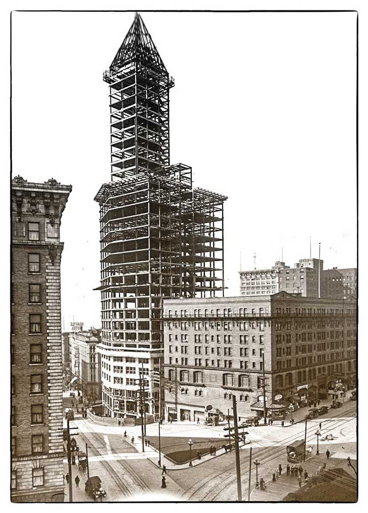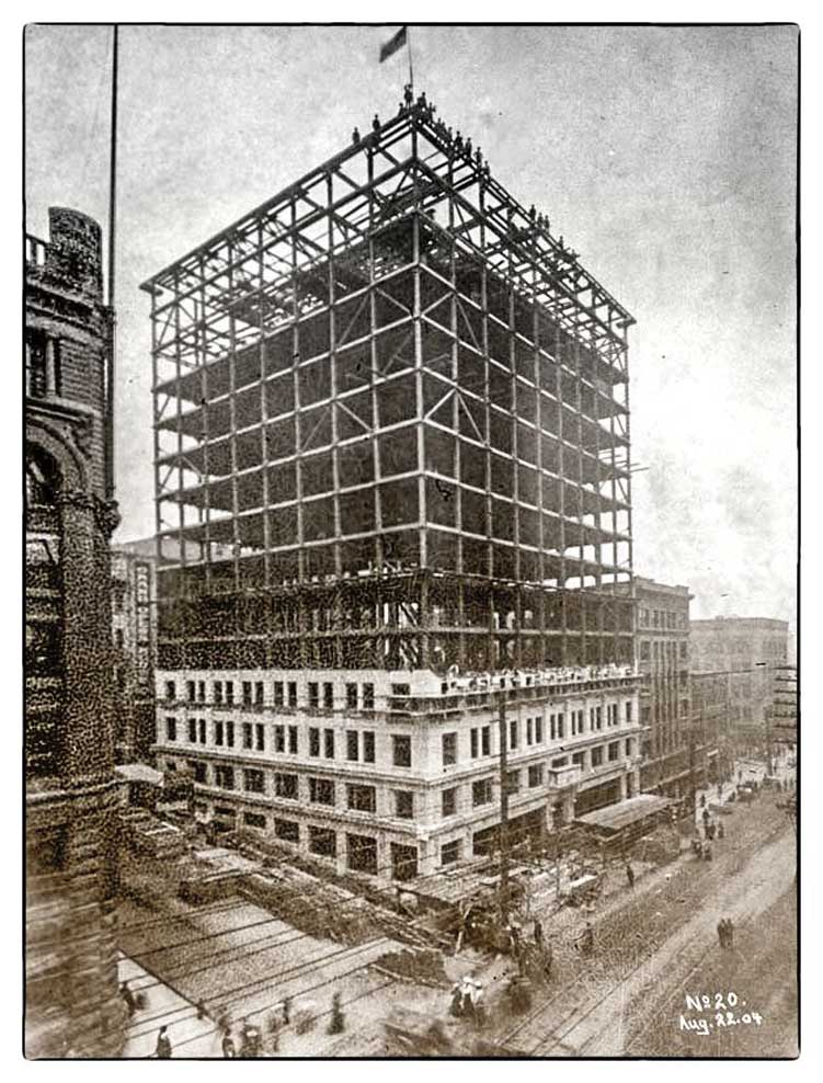 In 1904, the Alaska Building at 2nd and Cherry opened. This was the first Seattle high-rise at fourteen stories tall. Today, this building still stands and is a high-end hotel. We think one could assume that some Local 217 wiremen worked on that early building in the sky.
