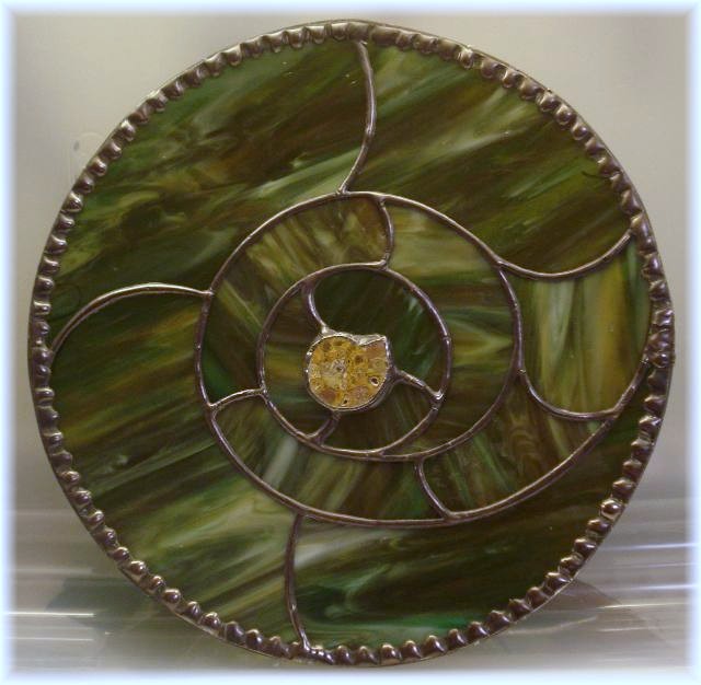 Green glass surrounds a genuine ammonite fossil. 9 1/2" $50