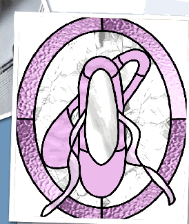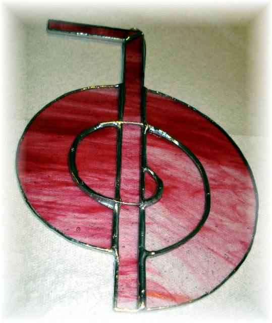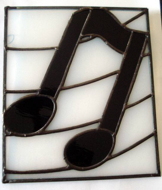 Musical note composed of black waterglass with a smoky white background. Approximately 7" x 8".