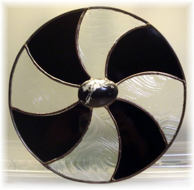 Black and clear glass spirals around a beautiful chrysanthemum stone. 9 1/2" $50