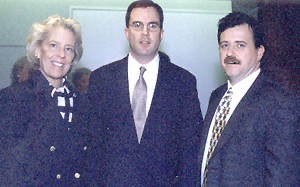 Cele Hahn (R-Westfield), (center) Daniel Forte, President of the Massachusetts Bankers Association, and (right) John Quinn, Chair of the Joint Committee on Banks and Banking, at the Association's annual briefing for legislators. The Association represents more than 230 commercial, savings and cooperative banks. (4/01)