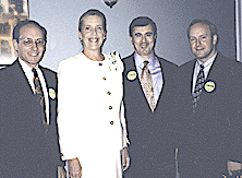 Massachusetts Housing Chairman Steve Pierce, Governor Paul Cellucci and State Senator Michael Knapik join Cele as she announces her candidacy for a third term as Westfield State Representative. Supporters gathered for the event at the School Street Bistro in Westfield on March 5th.