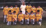 Members of the "Cele Hahn State Representative" softball team for 9 to 12 year old girls join their team sponsor at the Sadie Knox field. Cele's team ended the season in first place!