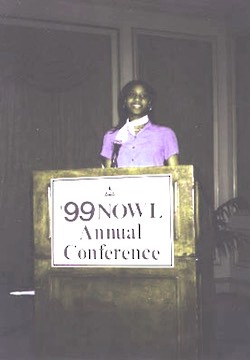 Another $3,000 scholarship winner for Cele, Jodi Ann Lewis of Springfield, gives her acceptance speech at the NOWL Convention in Pasadena.