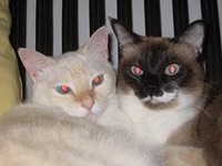 The dog, the cats. Okay, so the semi-Siamese knows how to climb the wall and escape. We got her a collar and tag so people won't think she's a stray.
