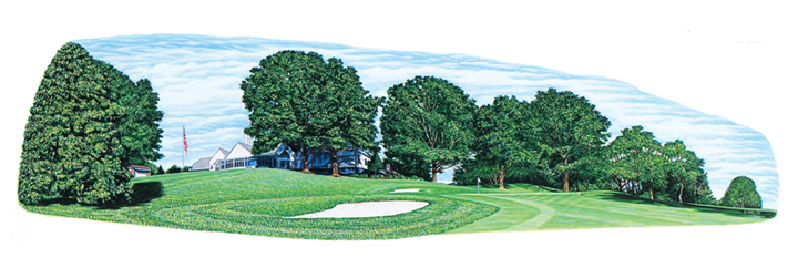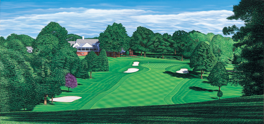 This golf print features the 18th hole at South Hills Country Cub in Pittsburgh, Pennsylvania. Founded in 1920, South Hills