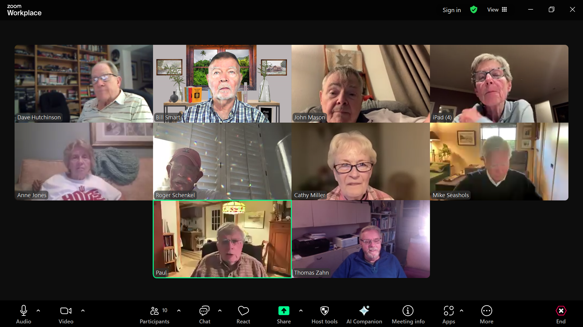 The Zoom meeting began on time, but without the Host, Bill Smart. Bill did not