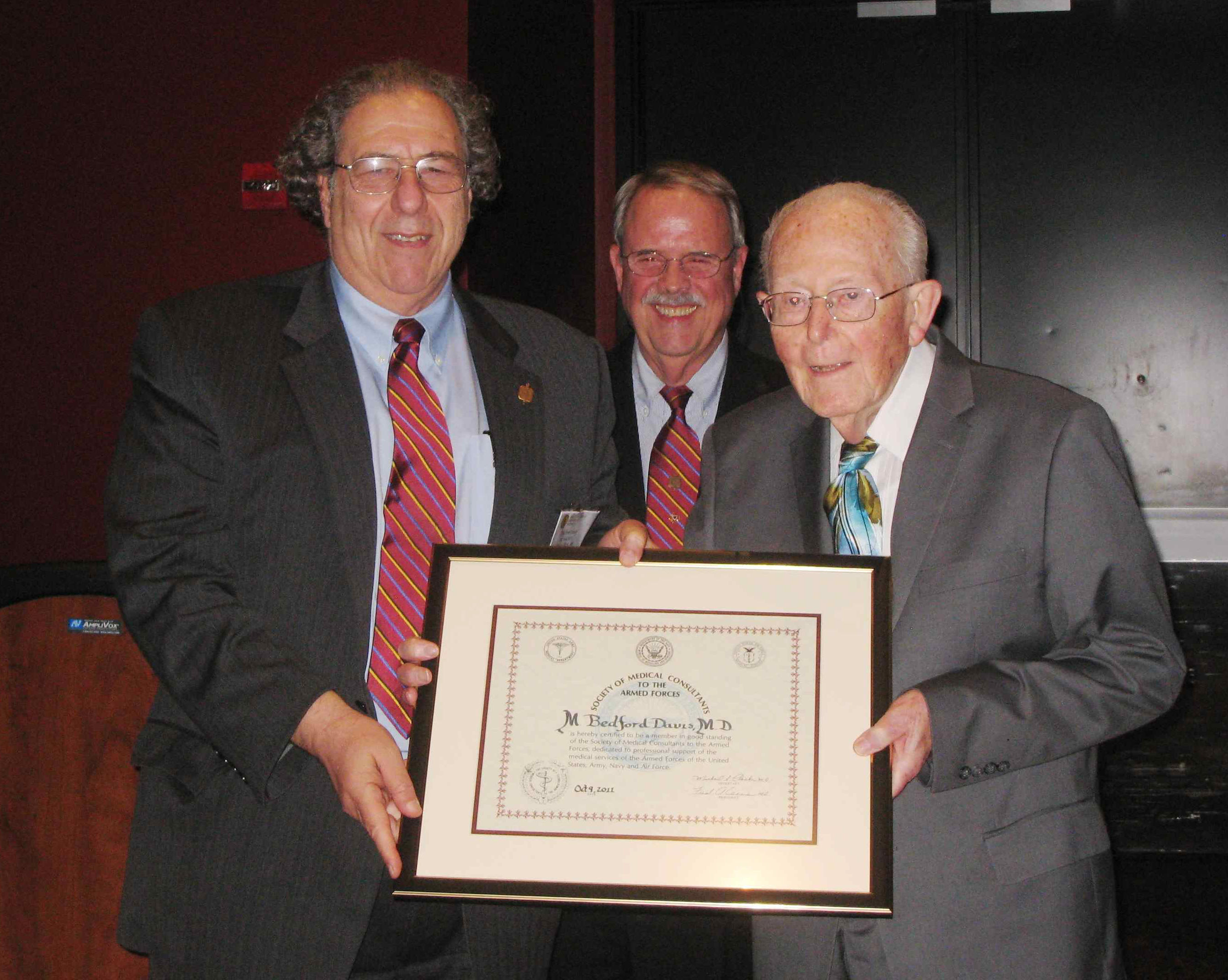 present honorary SMCAF membership to M. Bedford Davis, MD, a WWII Army