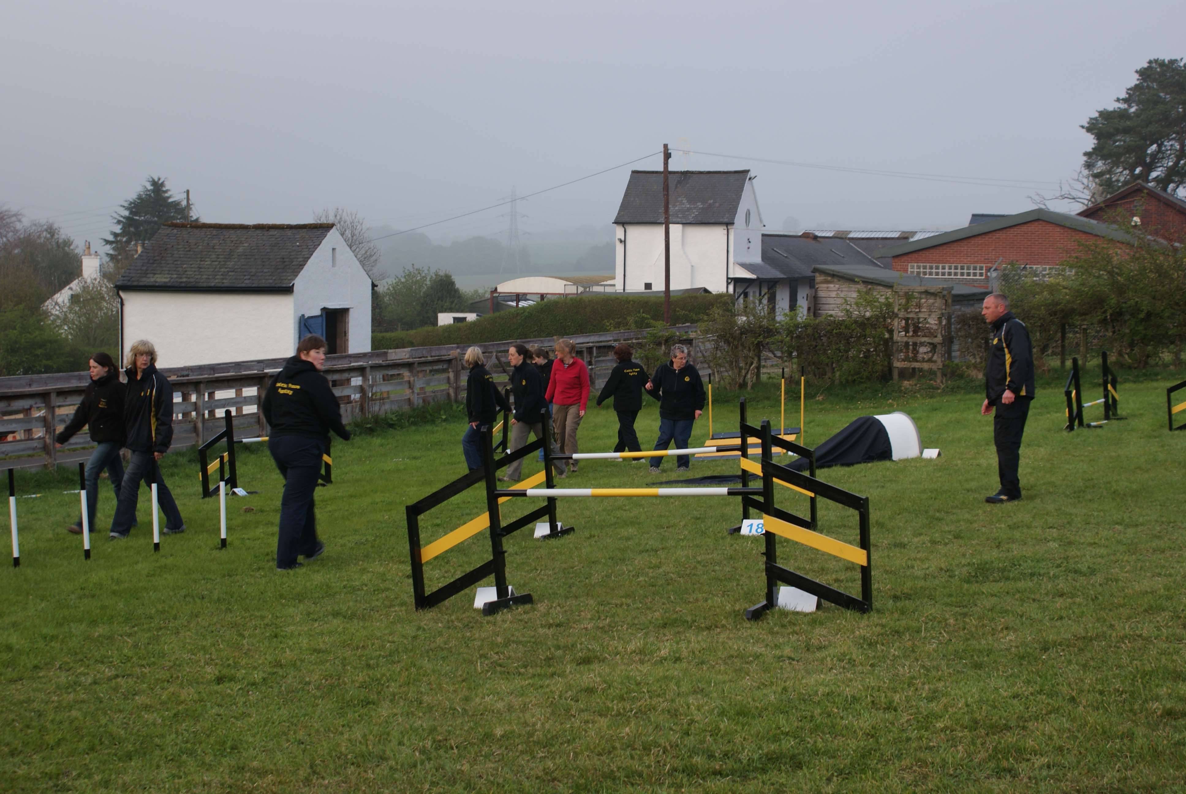 Club Members walking through a training problem on the training field overlooked by Trainer, Gordon Aitchison. |