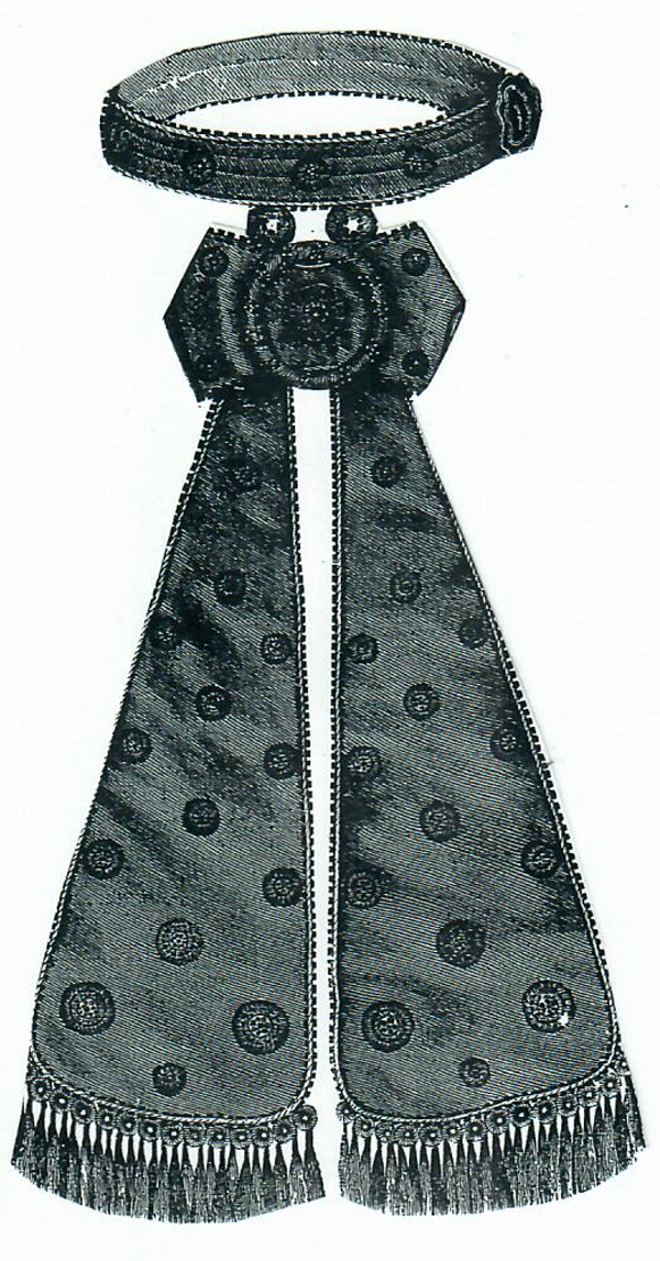 ornamented with crochet rosettes, and is intended to be worn with black or