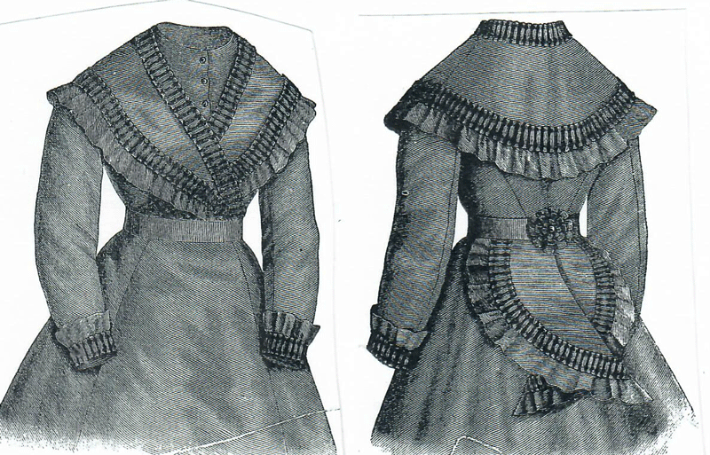 waist is of dark blue serge, and is completed by a fichu and peplum of the