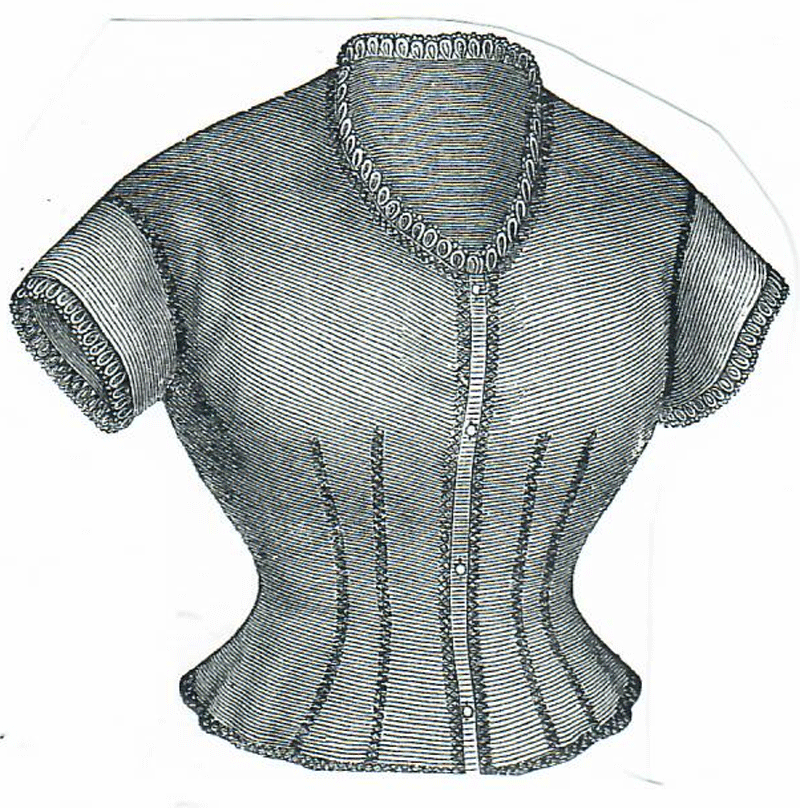 around the neck and sleeves with a red worsted tatted edging, and faced with