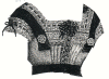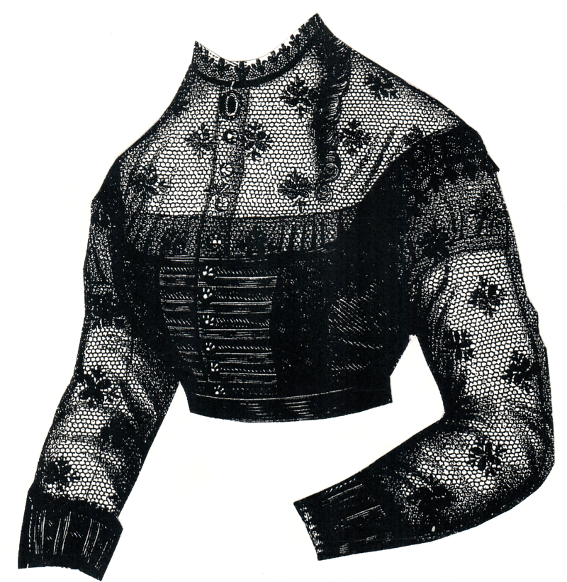 black lace, studded with beads, jet buttons and jet grelots.