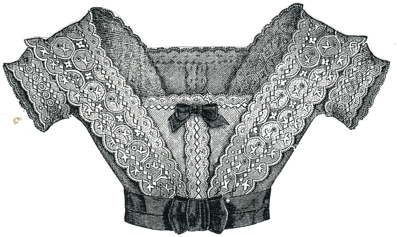 Valenciennes edging, and needlework insertion, and is finished in front with