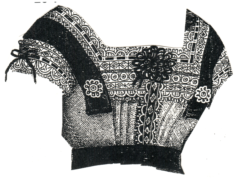 insertion, and Valenciennes Edging. Black velvet ribbon and small