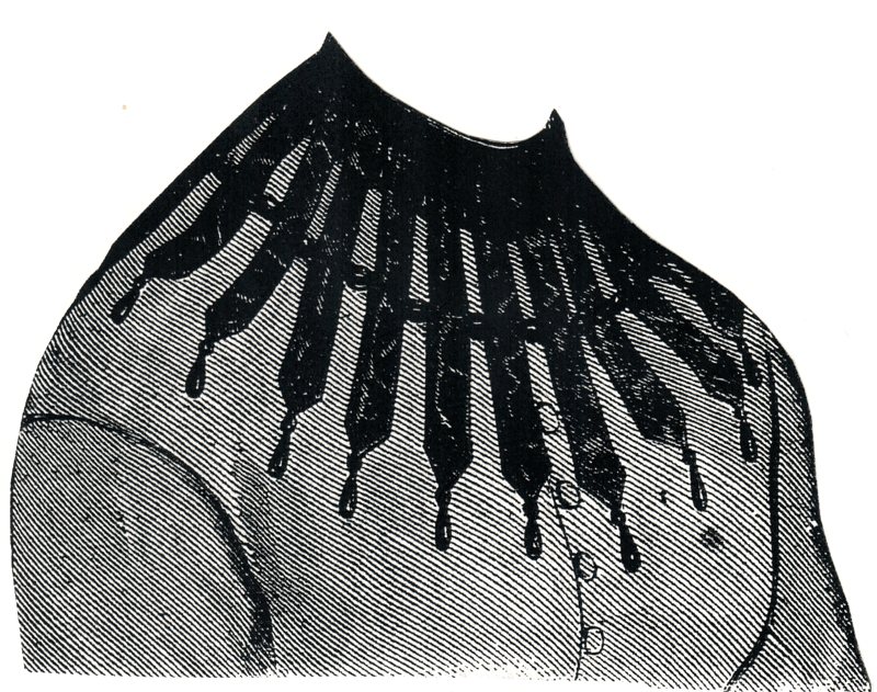 ends of the collar are crossed in front and form bavettes.