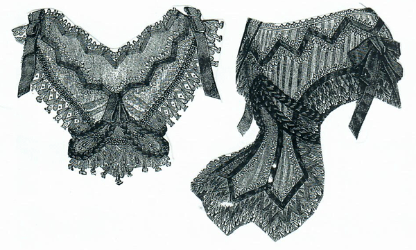 lace, narrow black satin piping, and bead lace.