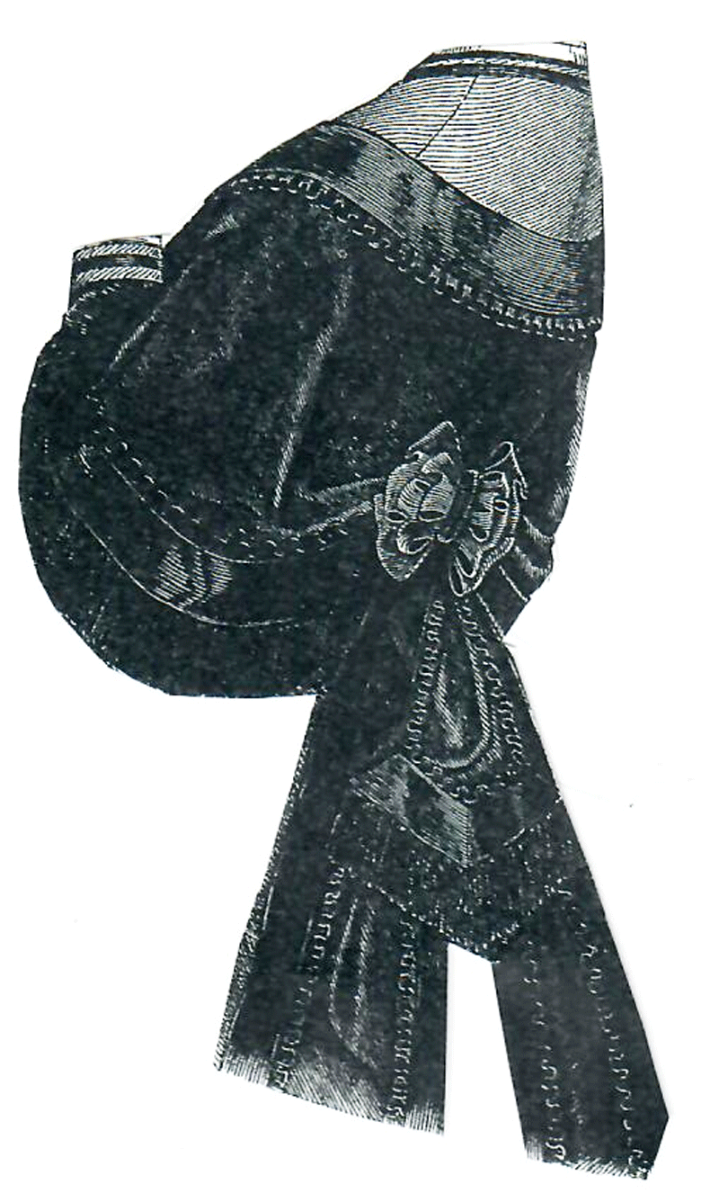 with black silk, and trimmed round the edge with a wide quilling of the