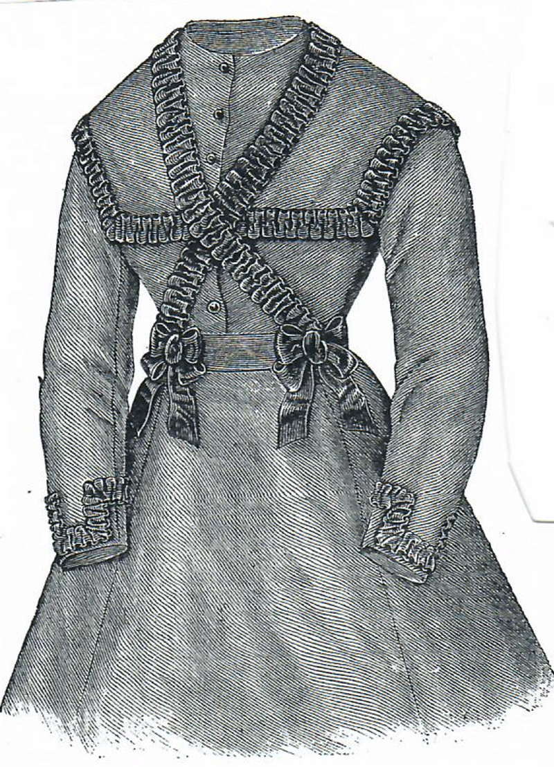 favorite. The trimming imitates a fichu, which is completed with sash
