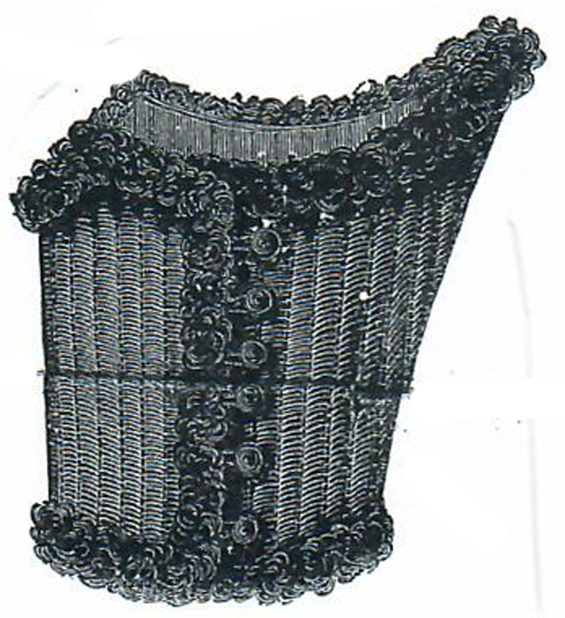 part is stitched along the outside edge with black silk in small diamonds;