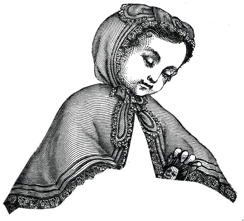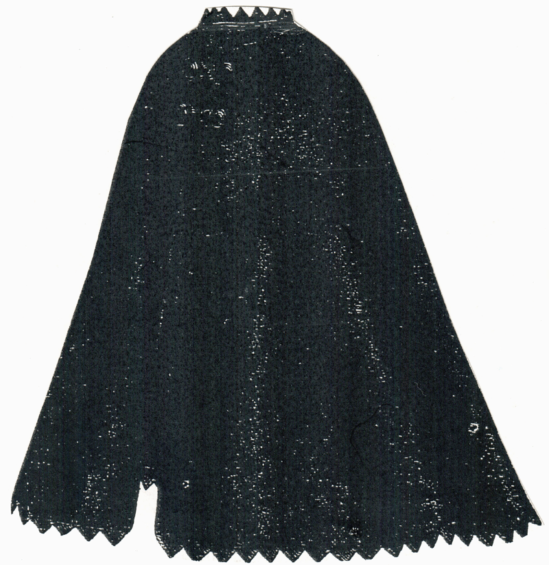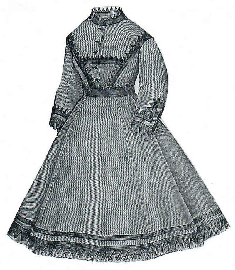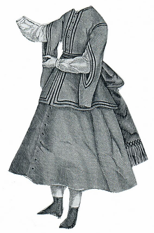 Alpaca. The trimming of the dress consists of folds, points, and bows