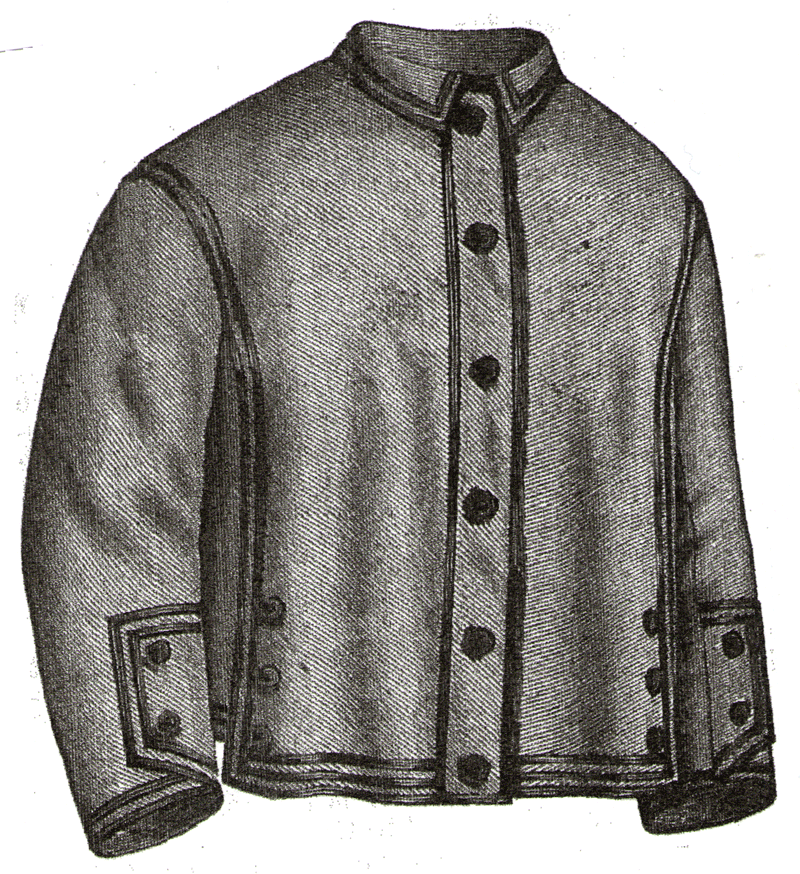 with brown satin and pearl bullet buttons, and is completed by a sailor's