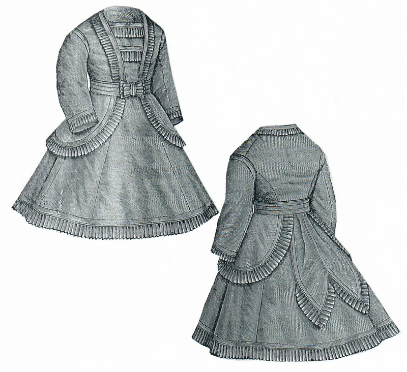 is gored, pleated behing, and trimmed round the bottom with a flouce of the