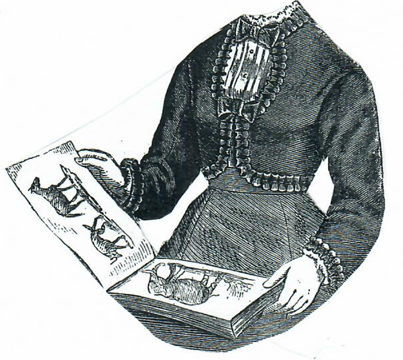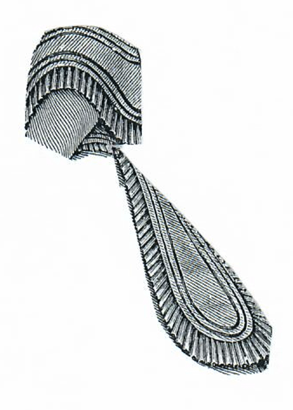 with brown silk and sewed on the dress with a narrow fold as a heading.
