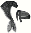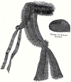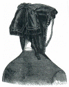 together with an elastic cord drawn through the top, which fasten it to the