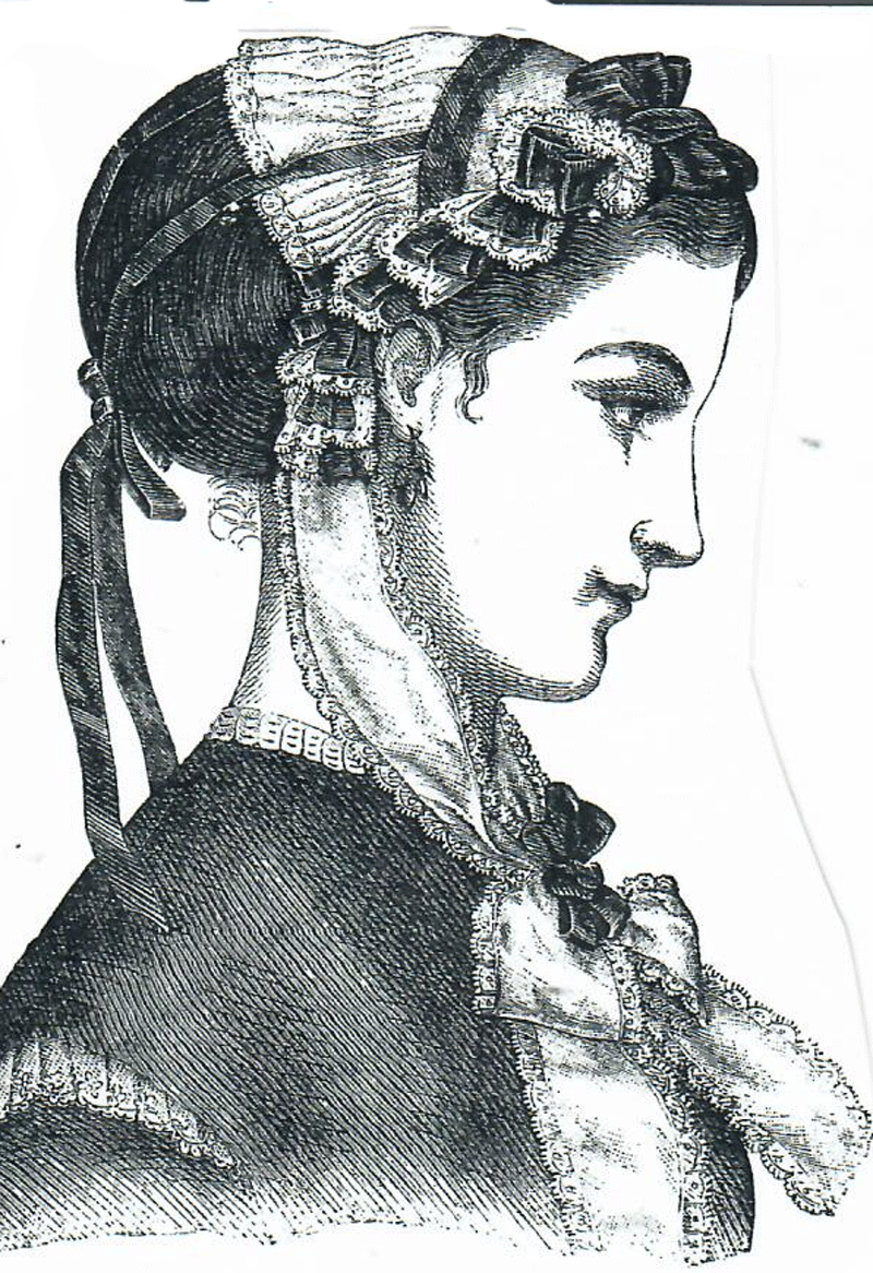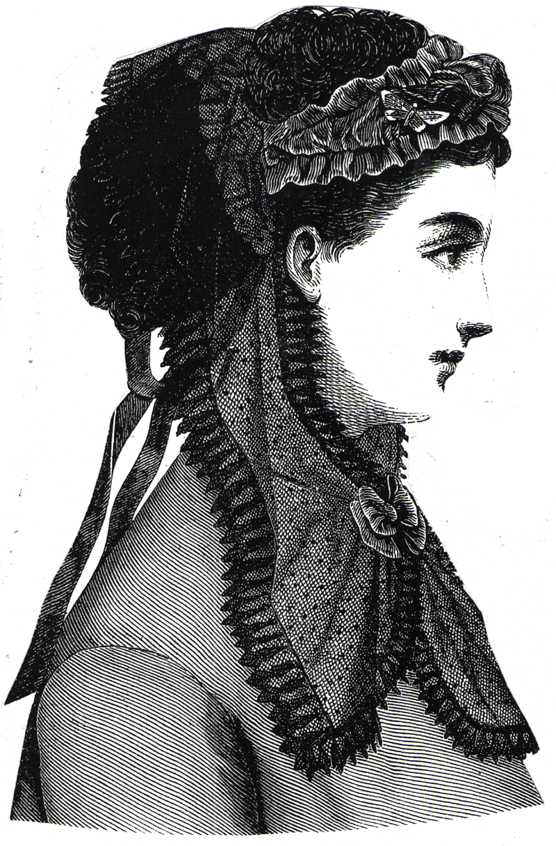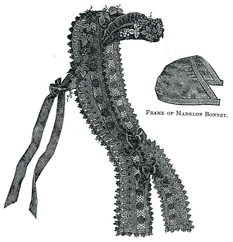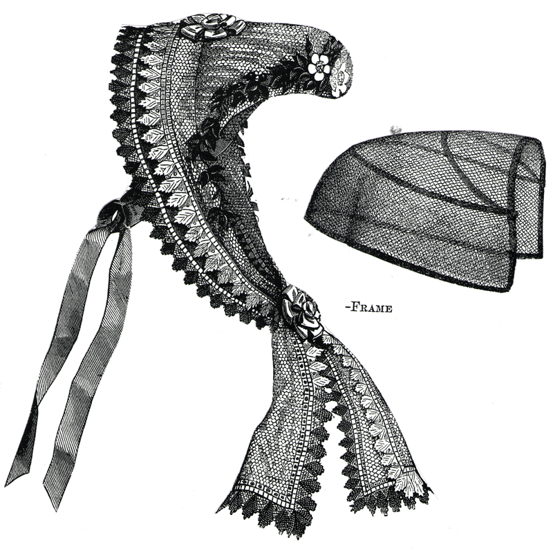 This bonnet was of black figured lace.