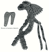 feathers and curled dove feathers headed with a large bronze button.